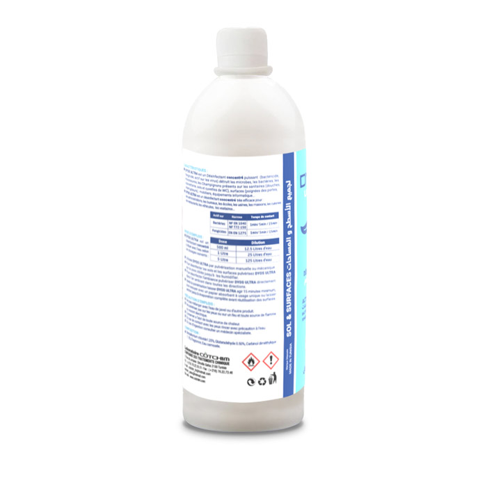 | Utilisation | -DYOS ULTRA est un désinfectant utilisée par pulvérisation manuelle ou mécanique. |